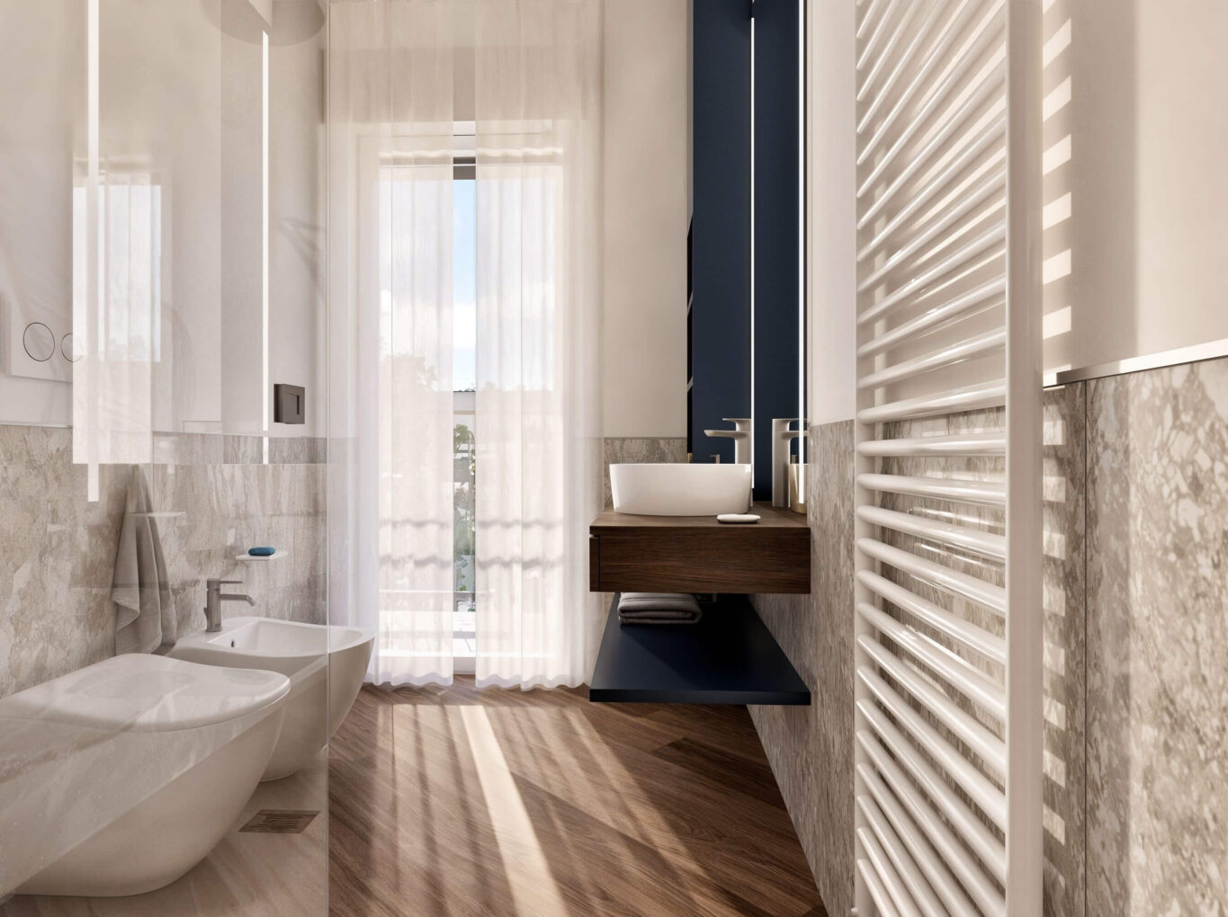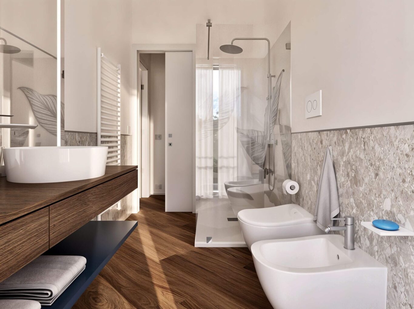 L’appartamento è stato progettato con cura per ottimizzare gli spazi e ogni dettaglio è studiato per offrire la massima personalizzazione: è possibile adattare il progetto e le finiture secondo i propri gusti, creando così un’abitazione su misura.