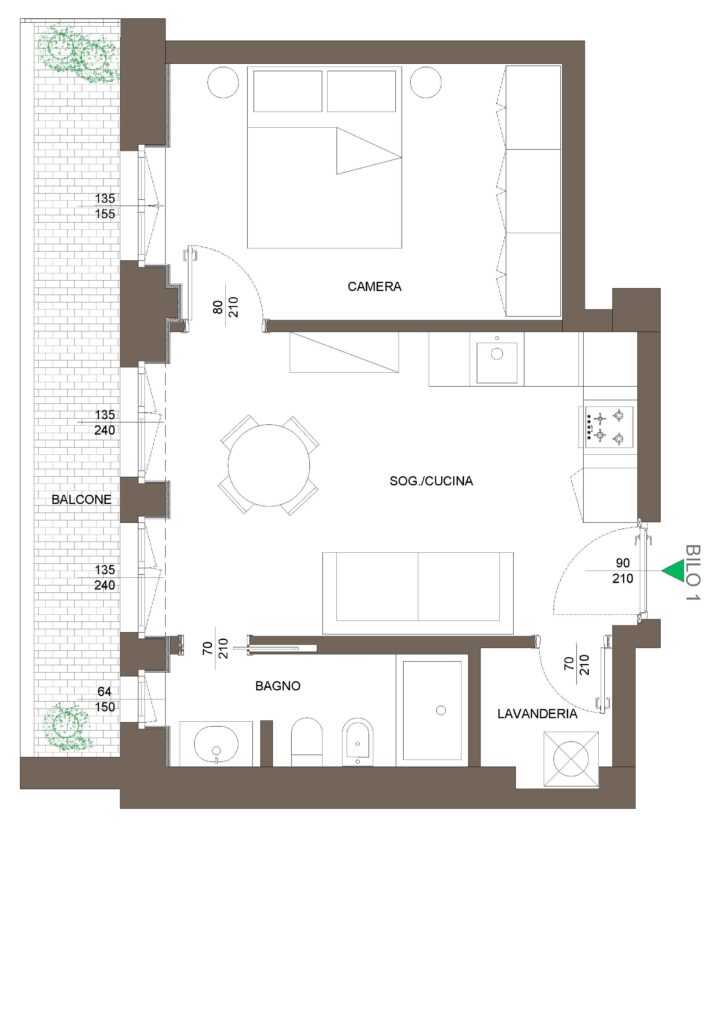 L’appartamento sarà composto da ampio soggiorno con angolo cottura, grande camera matrimoniale, bagno finestrato con doccia, lavanderia. Tutti gli ambienti affiacciano su un grande balcone vivibile.
