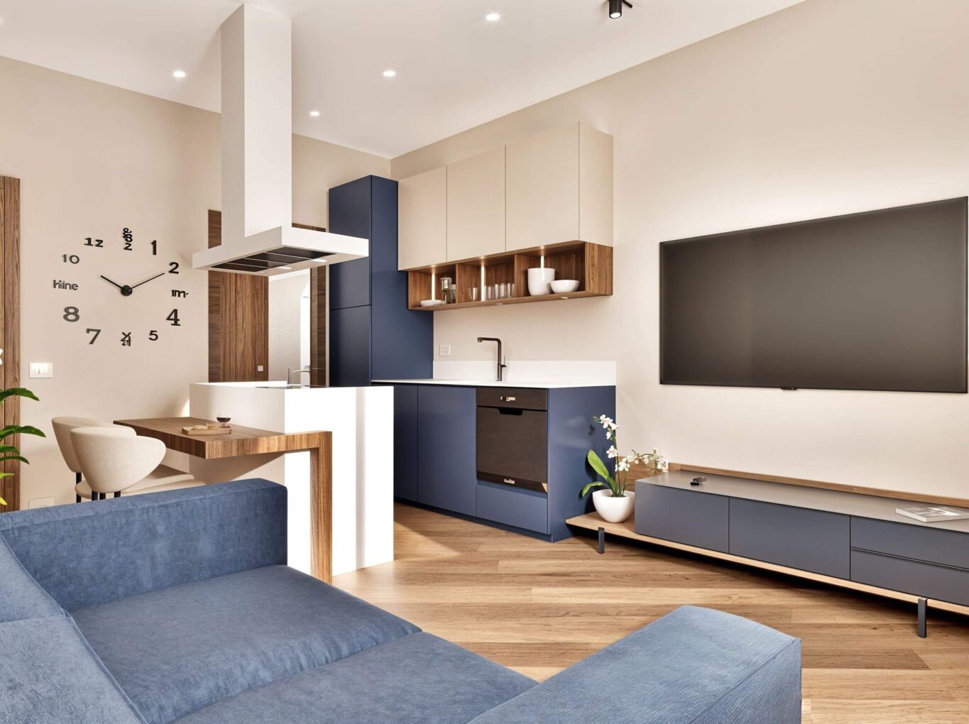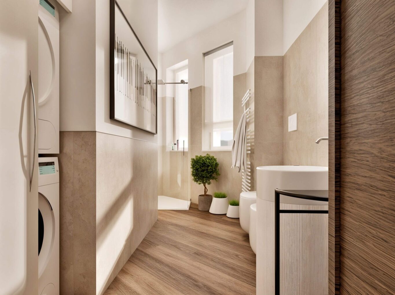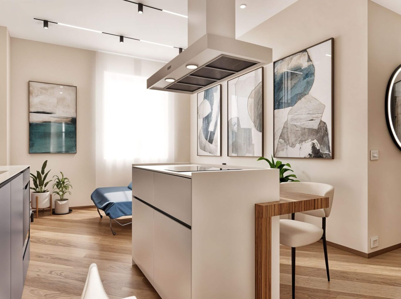 L’appartamento è stato progettato con cura per ottimizzare gli spazi e ogni dettaglio è studiato per offrire la massima personalizzazione: è possibile adattare il progetto e le finiture secondo i propri gusti, creando così un’abitazione su misura.