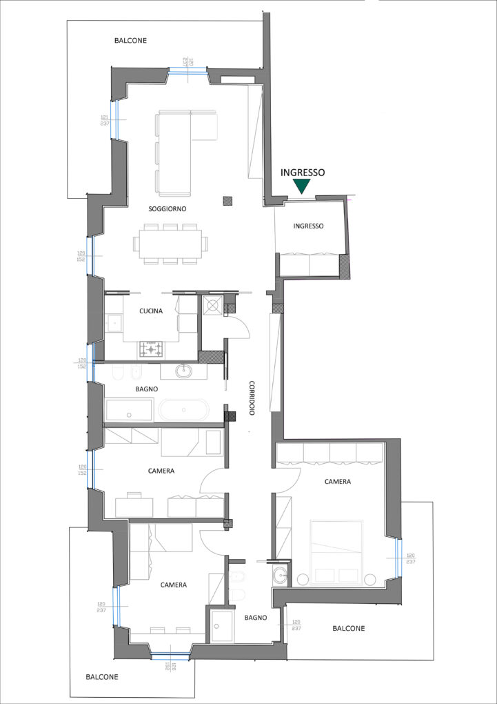 Bergamo, in una via elegante e tranquilla a pochi passi da Piazza Pontida, ampio quadrilocale al terzo piano in un palazzo signorile, servito da ascensore. L’appartamento, libero su quattro lati, vanta una generosa superficie di 150 mq e si compone di ingresso con abbassamenti estetici con luci a led, un luminoso soggiorno con due porte finestre che affacciano su uno dei balconi di generosa ampiezza, cucina separata, tre ampie camere da letto, doppi servizi finestrati di cui uno dotato di vasca a libera installazione, un lungo corridoio dove si può inserire un’armadiatura, ripostiglio/lavanderia con attacco per la lavatrice e tre balconi vivibili. Disponibile un box singolo e una cantina all’interno dello stabile.