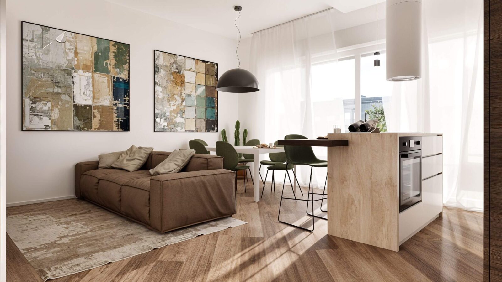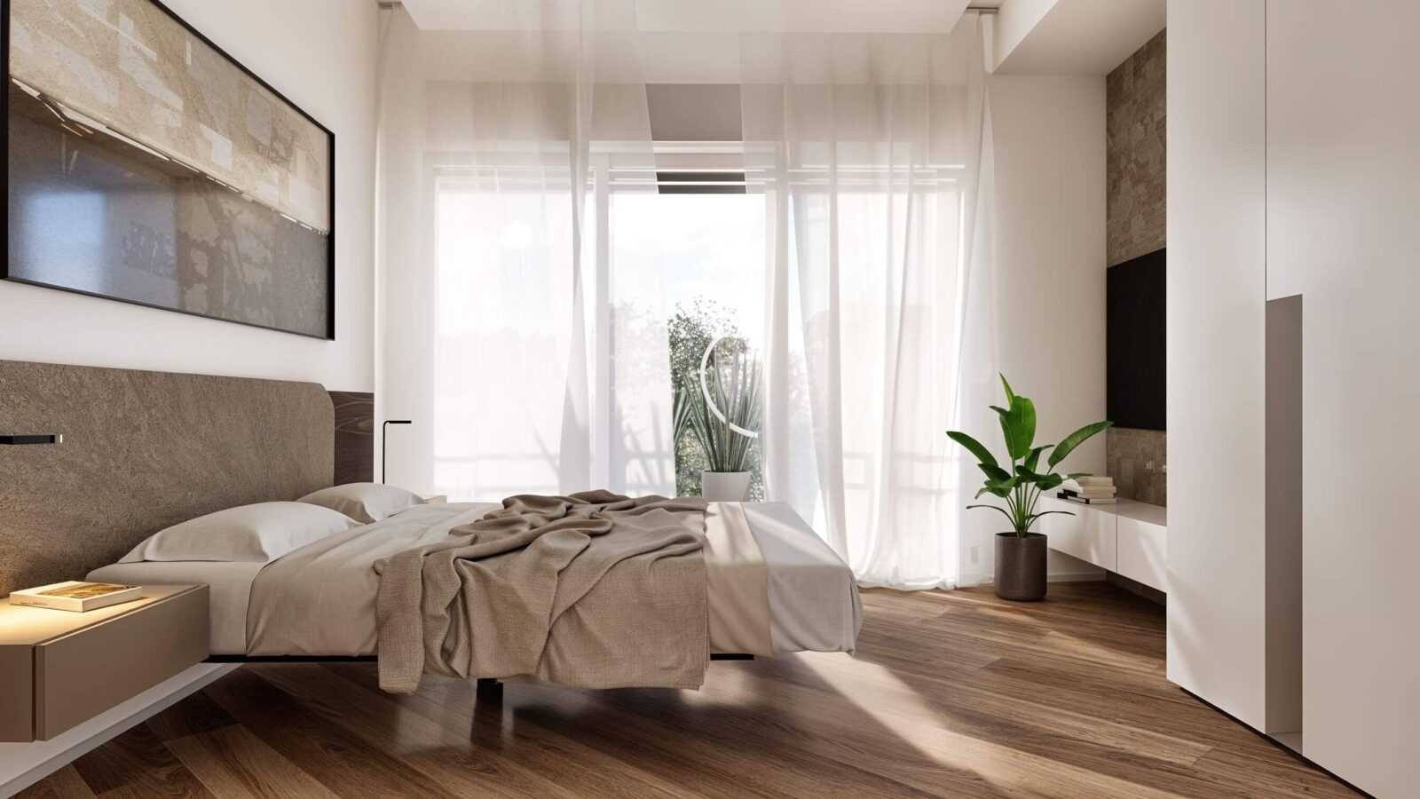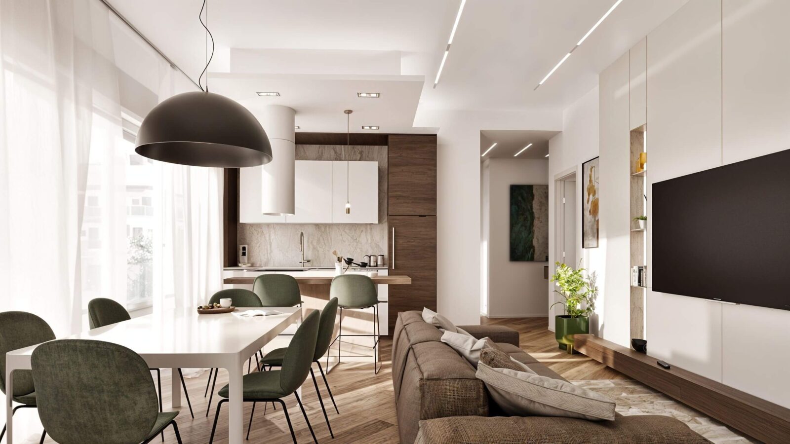 L’appartamento sarà composto da ingresso dotato abbassamenti estetici con luci a led, luminoso living dotato di cucina con isola, due ampie camere, lavanderia, disimpegno e un bagno con doccia e sanitari filomuro. Finiture di pregio.