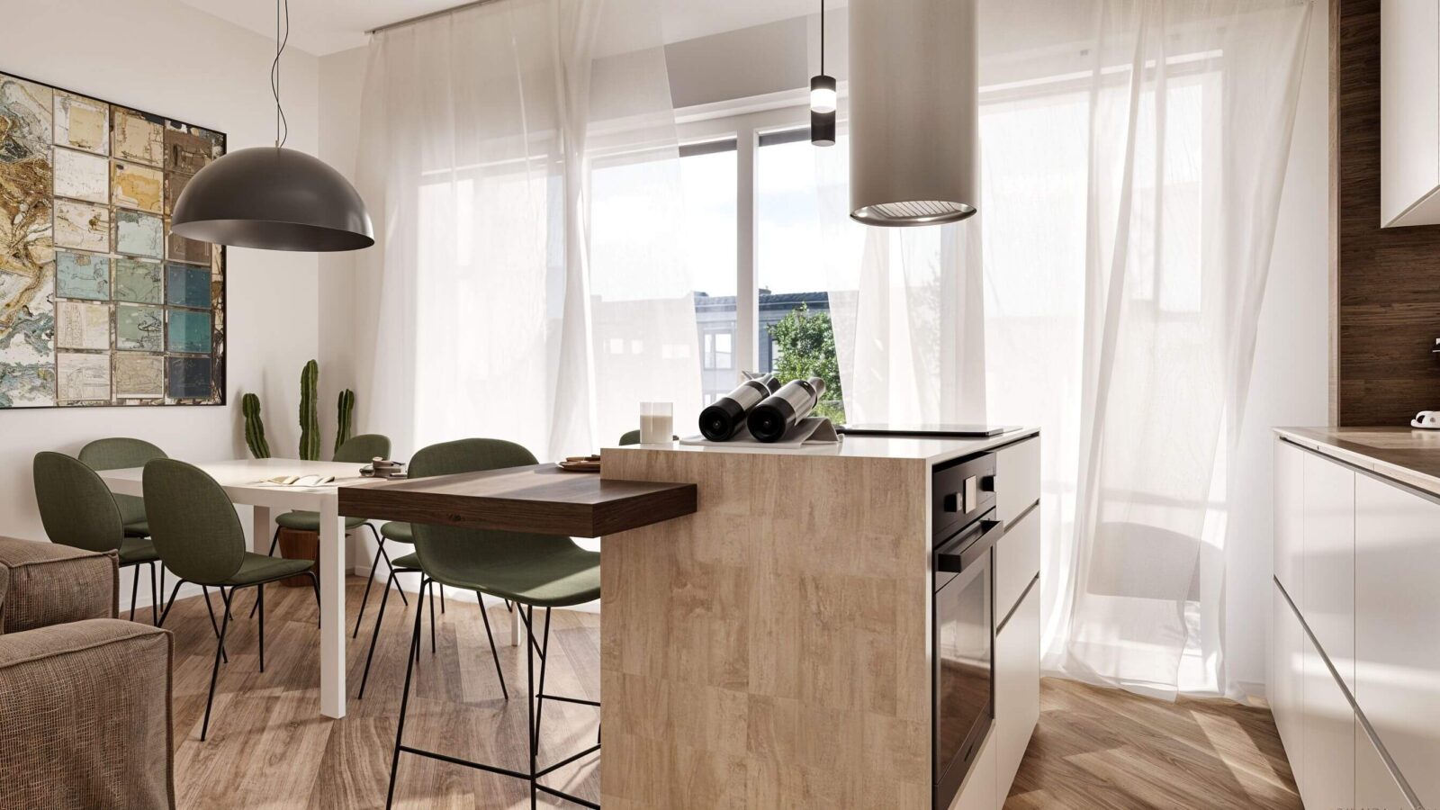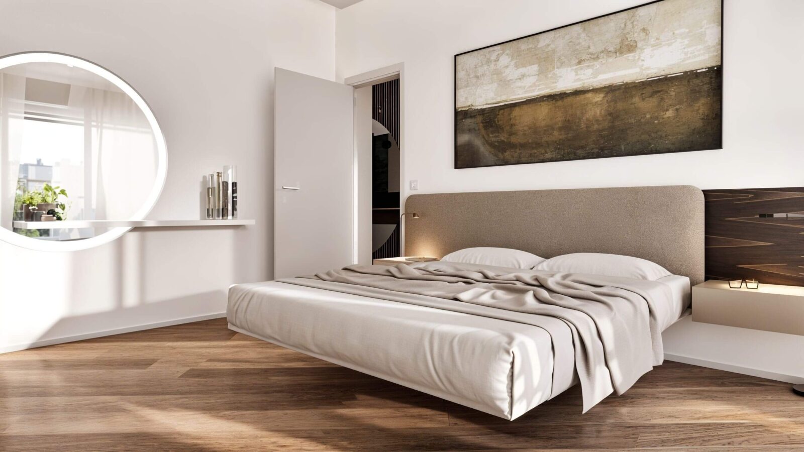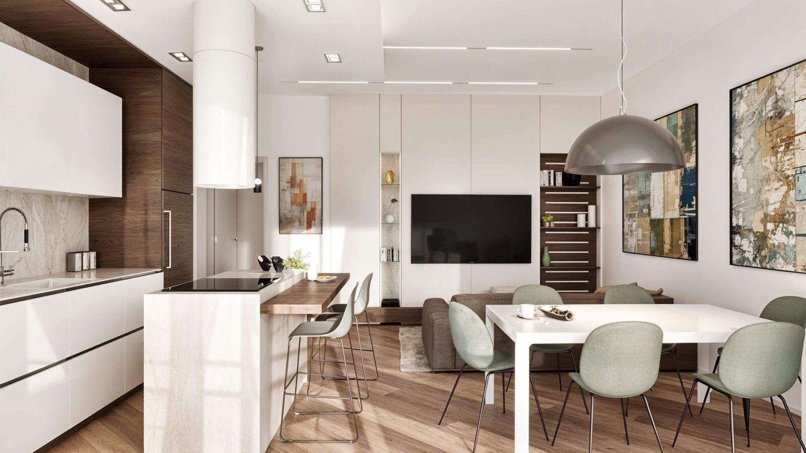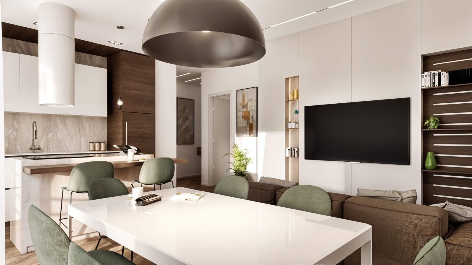L’appartamento sarà composto da ingresso dotato abbassamenti estetici con luci a led, luminoso living dotato di cucina con isola, due ampie camere, lavanderia, disimpegno e un bagno con doccia e sanitari filomuro. Finiture di pregio.